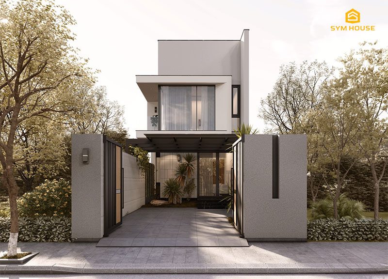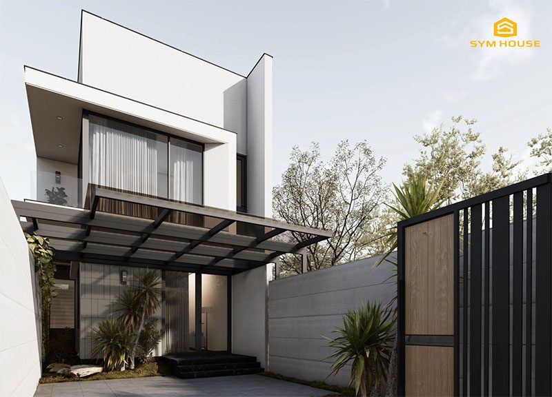Mặt tiền của ngôi nhà phố 2 tầng AA’s House được Sym House thiết kế với sự cân nhắc tỉ mỉ, tạo nên một vẻ đẹp hiện đại và ấn tượng ngay từ cái nhìn đầu tiên. Bề ngoài của ngôi nhà thường được lựa chọn từ các vật liệu chất lượng cao như gạch, đá kết hợp với vật liệu khác như gỗ và kính, tạo nên sự hài hòa giữa sự cứng cáp và tính thẩm mỹ.